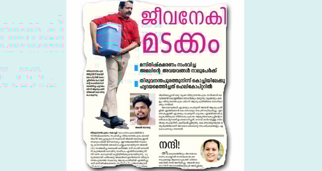 ഹൃദയം വേഗം എത്തിക്കുന്നതിന് ഹെലികോപ്റ്റർ അടക്കമുള്ള എല്ലാ ക്രമീകരണങ്ങളും ഒരുക്കിയ സംസ്ഥാനസർക്കാരിനും കെ-സോട്ടോ അധികൃതർക്കും പോലീസിനും നന്ദിയെന്നും കുടുംബാംഗങ്ങൾ പറഞ്ഞു.