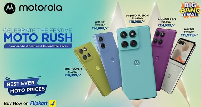 മുൻനിര സ്മാർട്ട്ഫോണുകളായ മോട്ടറോള എഡ്ജ് 60 പ്രൊ, എഡ്ജ് 60 ഫ്യൂഷൻ, മോട്ടോ ജി96 5ജി, മോട്ടോ ജി86 പവർ, മോട്ടറോള റേസർ 60 എന്നിവയ്ക്കാണ് ഓഫറുകളുള്ളത്.