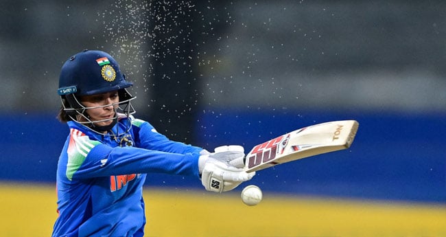 പാക് ബൗളര്മാരുടെ അച്ചടക്കത്തോടെയുള്ള ബൗളിംഗിനെ കൂട്ടുത്തരവാദിത്വത്തോടെയാണ് ഇന്ത്യന് ബാറ്റര്മാര് നേരിട്ടത്. ഓപ്പണര്മാരായ പ്രതിക റാവലും സ്മൃതി മന്ദാനയും ആദ്യ ഓവറുകളില് തകര്ത്തടിച്ചെങ്കിലും പിച്ചിന്റെ സ്വഭാവത്തിനനുസരിച്ച് ശൈലിമാറി. എന്നാല്, ഒമ്പതാം ഓവറിലെ അവസാന പന്തില് സ്മൃതി മന്ദാനയെ സന ഫാത്തിമ വിക്കറ്റിനു മുന്നില് കുടുക്കി. 32 പന്തില് 23 റണ്സ് ആയിരുന്നു സ്മൃതിയുടെ സംഭാവന.