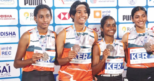 അണ്ടര് 20 പെണ്കുട്ടികളുടെ 4x100 മീറ്റര് റിലേയില് കേരളം വെങ്കലം നേടി. ഡെല്ന, എയ്ഞ്ചല് ജയിംസ്, അനാമിക, പി.എന്. അബിയ എന്നിവരായിരുന്നു ബാറ്റണ് കൈയിലേന്തിയത്. അണ്ടര് 16 പെണ്കുട്ടികളുടെ മെഡ്ലെ റിലേയില് പി. അനന്യ, ഭൂമിക സജീവ്, ടി.വി. ദേവശ്രീ, ശ്രീനന്ദ എന്നിവരുടെ സംഘം വെങ്കലം സ്വന്തമാക്കി.