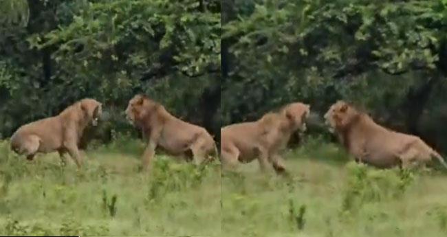 ആധിപത്യത്തിനായുള്ള യുദ്ധം: ഗിർ ദേശീയോദ്യാനത്തിലെ സിംഹപ്പോര് സോഷ്യൽ മീഡിയയിൽ വൈറൽ