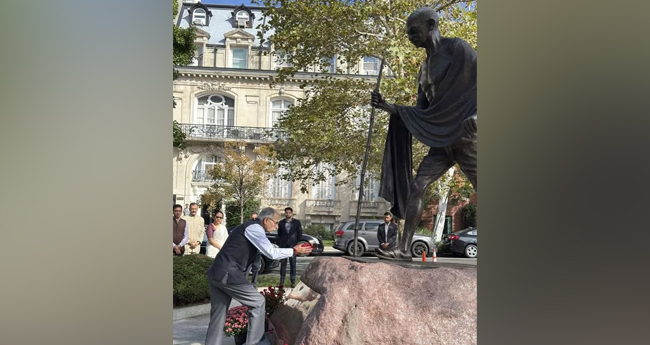വാഷിംഗ്ടൺ ഡിസി: മഹാത്മാ ഗാന്ധിയുടെ 156-ാം ജന്മവാർഷികത്തോട് അനുബന്ധിച്ച് ഇന്ത്യൻ അംബാസഡർ വിനയ് ക്വാട്ര എംബസി ഉദ്യോഗസ്ഥർക്കൊപ്പം ഗാന്ധിപ്രതിമയിൽ പുഷ്പാർച്ചന നടത്തി ആദരം അർപ്പിച്ചു.