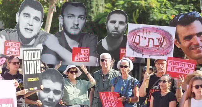 പ​​​​ല​​​​സ്തീ​​​​ൻ ത​​​​ട​​​​വു​​​​കാ​​​​രെ മോ​​​​ചി​​​​പ്പി​​​​ക്കു​​​​ന്ന​​​​തി​​​​നു പ​​​​ക​​​​ര​​​​മാ​​​​യി, 48 ഇ​​​​സ്രേ​​​​ലി ബ​​​​ന്ദി​​​​ക​​​​ളെ (ഇ​​​​വ​​​​രി​​​​ൽ 20 പേ​​​​ർ ഇ​​​​പ്പോ​​​​ഴും ജീ​​​​വി​​​​ച്ചി​​​​രി​​​​പ്പു​​​​ണ്ടെ​​​​ന്നു ക​​​​രു​​​​ത​​​​പ്പെ​​​​ടു​​​​ന്നു) മോ​​​​ചി​​​​പ്പി​​​​ക്കു​​​​ക എ​​​​ന്ന​​​​താ​​​​ണ് അ​​​​ടി​​​​യ​​​​ന്ത​​​​ര ല​​​​ക്ഷ്യം. ഒ​​​​ക്ടോ​​​​ബ​​​​ർ 13ന് ​​​​ജൂ​​​​ത അ​​​​വ​​​​ധി​​​​ക്കാ​​​​ല​​​​മാ​​​​യ സു​​​​ക്കോ​​​​ത് അ​​​​വ​​​​സാ​​​​നി​​​​ക്കു​​​​ന്ന​​​​തി​​​​ന് മു​​​​മ്പ് ബ​​​​ന്ദി​​​​മോ​​​​ച​​​​നം പ്ര​​​​ഖ്യാ​​​​പി​​​​ക്കു​​​​മെ​​​​ന്നു പ്ര​​​​തീ​​​​ക്ഷി​​​​ക്കു​​​​ന്ന​​​​താ​​​​യി ഇ​​​​സ്ര​​​​യേ​​​​ൽ പ്ര​​​​ധാ​​​​ന​​​​മ​​​​ന്ത്രി ബെ​​​​ഞ്ച​​​​മി​​​​ൻ നെ​​​​ത​​​​ന്യാ​​​​ഹു പ​​​​റ​​​​ഞ്ഞ​​​​തു ശു​​​​ഭ​​​​സൂ​​​​ച​​​​ന​​​​യാ​​​​യാ​​​​ണു കാ​​​​ണു​​​​ന്ന​​​​ത്.