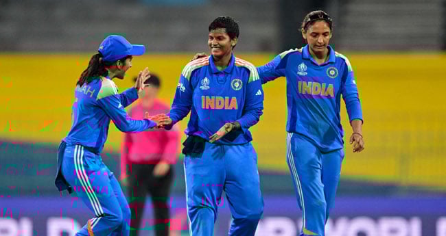 പാക് ബൗളര്മാരുടെ അച്ചടക്കത്തോടെയുള്ള ബൗളിംഗിനെ കൂട്ടുത്തരവാദിത്വത്തോടെയാണ് ഇന്ത്യന് ബാറ്റര്മാര് നേരിട്ടത്. ഓപ്പണര്മാരായ പ്രതിക റാവലും സ്മൃതി മന്ദാനയും ആദ്യ ഓവറുകളില് തകര്ത്തടിച്ചെങ്കിലും പിച്ചിന്റെ സ്വഭാവത്തിനനുസരിച്ച് ശൈലിമാറി. എന്നാല്, ഒമ്പതാം ഓവറിലെ അവസാന പന്തില് സ്മൃതി മന്ദാനയെ സന ഫാത്തിമ വിക്കറ്റിനു മുന്നില് കുടുക്കി. 32 പന്തില് 23 റണ്സ് ആയിരുന്നു സ്മൃതിയുടെ സംഭാവന.