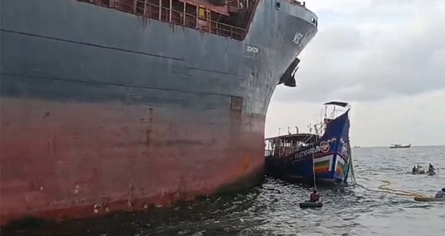 കഴിഞ്ഞ ബുധനാഴ്ച വൈകിട്ട് തീരത്തുനിന്ന് 12 നോട്ടിക്കല് മൈല് ദൂരത്താണ് എംഎസ്സി കമ്പനിയുടെ സില്വര് രണ്ട് കപ്പല് മത്സ്യ ബന്ധനയാനത്തിന് നേരേ എത്തിയത്. മത്സ്യത്തൊഴിലാളികള് ഒച്ചവച്ചതിനെ തുടര്ന്ന് കപ്പല് ക്യാപ്റ്റന് ബോട്ട് നിര്ത്തിയതിനാൽ മത്സ്യത്തൊഴിലാളികള് തലനാരിഴയ്ക്ക് രക്ഷപ്പെടുകയായിരുന്നു. എന്നാല് ബോട്ടിന്റെ പിന്ഭാഗത്ത് കപ്പല് ഇടിച്ചു നില്ക്കുന്ന നിലയുണ്ടായി.