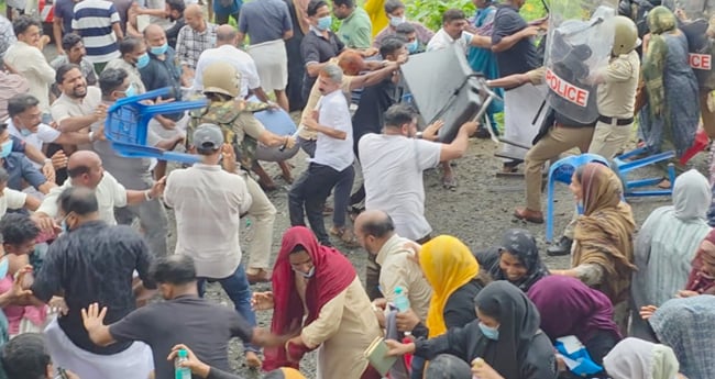 അതിനിടെ, ഇന്നലെ രാവിലെ വീടുകളിലെത്തി ആളുകളെ കസ്റ്റഡിയിലെടുക്കാന് പോലീസ് ശ്രമിച്ചതായും ആരോപണമുണ്ട്. ഇതും നാട്ടുകാരെ പ്രകോപിപ്പിക്കാന് കാരണമായി. സംഘര്ഷം രൂക്ഷമായതോടെ ജില്ലയുടെ വിവിധ ഭാഗങ്ങളില്നിന്ന് പോലീസുകാരെ സ്ഥലത്തെത്തിച്ചിട്ടുണ്ട്.