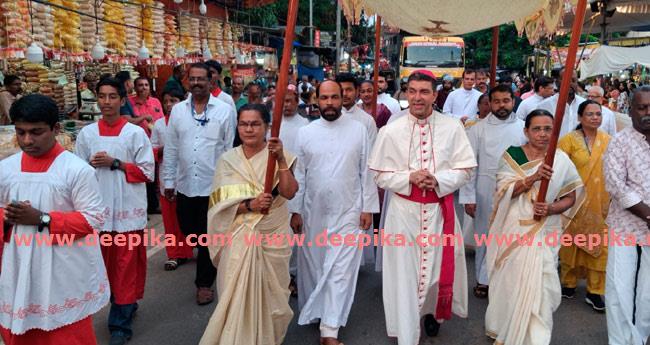 ഇന്നലെ വൈകുന്നേരം ആറിന് കോട്ടപ്പുറം രൂപതാധ്യക്ഷൻ മോസ്റ്റ് റവ. ഡോ. അംബ്രോസ് പുത്തൻവീട്ടിലിന്റെ കാർമികത്വത്തിൽ ദിവ്യബലി അർപ്പിക്കപ്പെട്ടു. തുടർന്ന് നൊവേന, പ്രദിക്ഷണം, ആരാധന എന്നിവയുമുണ്ടായി.