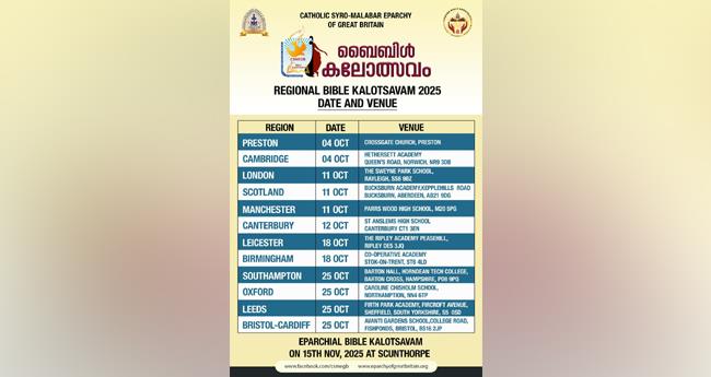 യുകെയുടെ വിവിധ ഭാഗങ്ങളിൽ നിന്നെത്തുന്ന കലാകാരൻമാരെയും കലാകാരികളെയും യുക്മ പ്രവർത്തകരെയും ചെൽടൺഹാമിലെ എം.ടി. വാസുദേവൻ നായർ നഗറിലേക്ക് സ്വാഗതം ചെയ്യുന്നതായി യുക്മ പ്രസിഡന്റ് അഡ്വ. എബി സെബാസ്റ്റ്യൻ, ജനറൽ സെക്രട്ടറി ജയകുമാർ നായർ, ട്രഷറർ ഷീജോ വർഗീസ്, ദേശീയ കലാമേള കൺവീനർ വർഗീസ് ഡാനിയൽ (വൈസ് പ്രസിഡന്റ്), സ്മിത തോട്ടം (വൈസ് പ്രസിഡന്റ്), സണ്ണിമോൻ മത്തായി (ജോയിന്റ് സെക്രട്ടറി), റെയ്മോൾ നിധീരി (ജോയിന്റ് സെക്രട്ടറി), പീറ്റർ താണോലിൽ (ജോയിന്റ് ട്രഷറർ), ദേശീയ സമിതിയംഗം രാജേഷ് രാജ്, സൗത്ത് വെസ്റ്റ് റീജിയണൽ പ്രസിഡന്റ് സുനിൽ ജോർജ് എന്നിവർ അറിയിച്ചു.