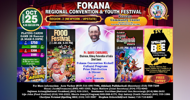 ഫൊക്കാന റീജിണൽ കൺവൻഷനോട് അനുബന്ധിച്ച് ഫുഡ് ഫെസ്റ്റിവൽ, യൂത്ത് ഫെസ്റ്റിവൽ, സ്പെല്ലിംഗ് ബീ കോംപറ്റീഷൻ, ചിട്ടുകളി മത്സരം, ഫൊക്കാന കിക്ക് ഓഫ് തുടങ്ങിയ നിരവധി പരിപാടികളോട് ആണ് റീജണൽ കൺവൻഷൻ ചിട്ടപ്പെടുത്തിയിട്ടുള്ളത്.