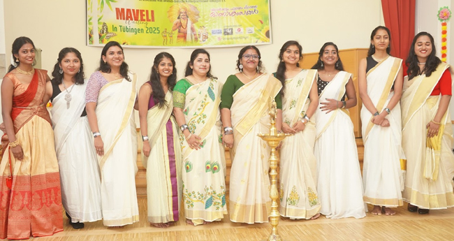ബര്ലിന്: യൂറോപ്പിലെ പ്രശസ്തമായ മലയാളം ഗുണ്ടര്ട്ട് ചെയര് സ്ഥിതിചെയ്യുന്ന ട്യൂബിംഗന് നഗരത്തിലെ മലയാളി മല്ലൂസിന്റെ ഓണാഘോഷം ഗംഭീരമായി. ജര്മന് മല്ലൂസും ഇന്തോ ജര്മന് കള്ച്ചറല് സൊസൈറ്റിയും സംയുക്തമായി "മാവേലി വെയ്റ്റിംഗ് ഇൻ ട്യൂബിംഗൻ 2025' ആഘോഷിച്ചു. നഗരമധ്യത്തിലെ ഷ്ളാട്ടര്ഹൗസില് രാവിലെ 8.30ന് രജിസ്ട്രേഷനോടുകൂടി പരിപാടികള്ക്ക് തുടക്കമായി.