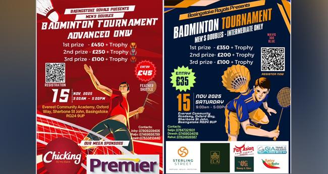 ബേസിംഗ്സ്റ്റോക്ക് റോയൽസ് ക്ലബിന്റെ ആഭിമുഖ്യത്തിൽ യുകെ ബാഡ്മിന്റൺ ടൂർണമെന്റ് നവംബർ 15ന്