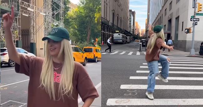 ന്യൂയോർക്ക് സിറ്റിയുടെ തിരക്കേറിയ ക്രോസ് വാക്കിന് നടുവിൽ ആത്മവിശ്വാസത്തോടെ നൃത്തം ചെയ്യുന്ന അമേരിക്കൻ യുവതിയെയാണ് ഈ വൈറൽ വീഡിയോയിൽ കാണാൻ കഴിയുന്നത്. സാധാരണമായ തെരുവോരത്തെ, തത്സമയ ആഘോഷ വേദിയാക്കി മാറ്റിക്കൊണ്ട് യുവതിയുടെ ചലനങ്ങൾ ഭോജ്പുരി ട്രാക്കിന്റെ താളവുമായി ലയിച്ചു.